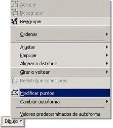 1. Seleccionar el objeto a editar.2. En la barra de herramientas de dibujo (parte inferior de la pantalla) elegir el menú Dibujo. 3. Seleccionar la opción Modificar puntos. 4. Una vez hecho lo anterior, aparecerá el dibujo en forma punteada y el cursor en forma de estrella indicando cuales puntos pueden ser modificados ó eliminados.
